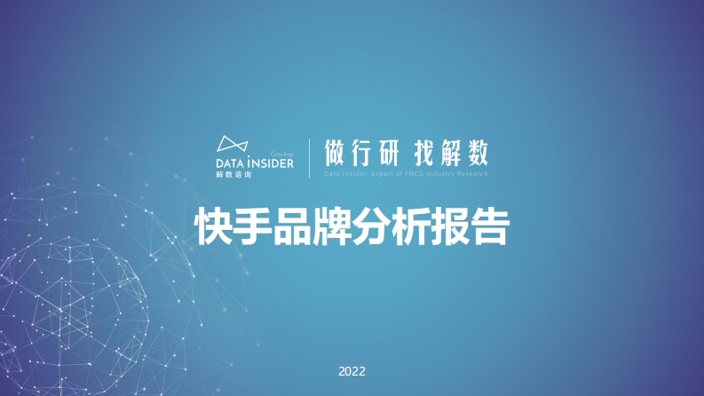 DATA INSIDER做行研找解数快手品牌分析报告2022张杨老师带你看品牌解数咨询第135期报告快手品牌分析报告做行研找解数DATA INSIDER综述快手电商发展阶段由工具型产品转型杜交型产品加速商业化变现,大力扶持广告营销,直播电商。·快手平台社区内容多元发展,平台生态持续繁荣。快手出品《冰雪英雄》《冰雪快报》等五大自制节目;快手的首档解压脱口秀,由快手用户与知名脱口秀演员同台竞技,知名艺人助阵;2021年底,“快手星芒计划”已推出240部独播订制短剧。·快手发展趋势:快手日活、月活用户同比增长20%左右,快手总收入同比增长37.9%快手线上营销和电商交易总额均高速增长,增速达到75%+。·磁力引起提出“新市井商业”价值定位助力品牌实现扩圈、链接、经营、洞察四大价值。快手品牌筛选:在三个月的所有品牌top100的数据,筛选出每个类目的总销售额,看挑选出典型类目,在典型类目里筛选出典型品牌进行分析。三大品类优质快手品牌分析围绕品牌概况、品牌自播、达人分销进行分析。“朵拉朵尚”一希望把美丽当做礼物,送给全世界爱美的女性。“干柏年”让每一位女性在最美的岁月,遇见最美的自己。“天海藏”秉承让天海藏成为深受消费者喜爱的品牌的品牌使命。做行研找解数DATA INSIDER