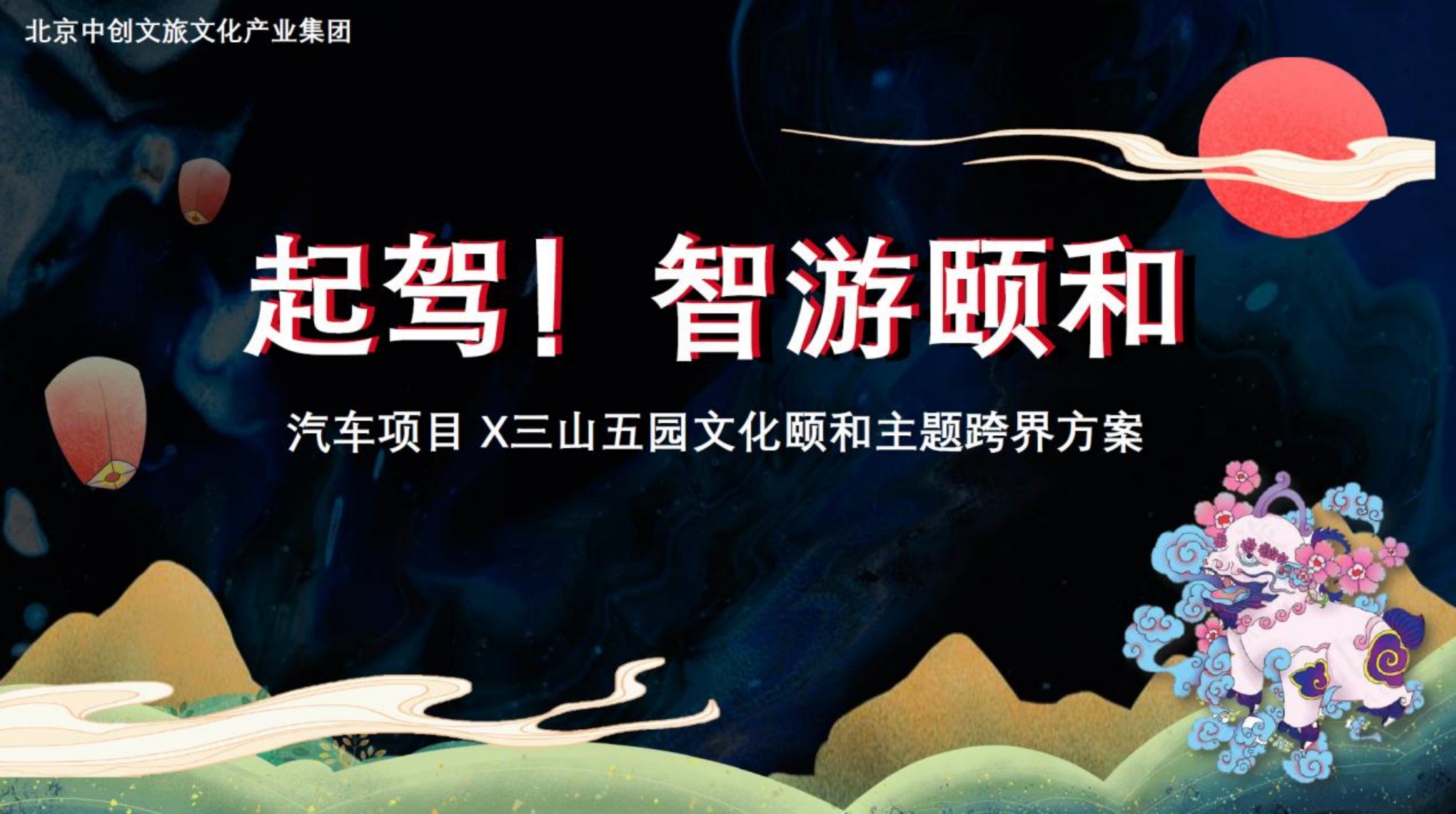北京中创文旅文化产业集团起驾!智游颐和汽车项目X三山五园文化颐和主题跨界方案》方案目录01活动目的概述目录02活动内容介绍03颐和主题简介04IP转化思路05中创文旅案例06IP跨界发布会活动目的◆跨界文化主题品牌发布亟需引发“年轻心生代”消费者关注。◆用P跨界形式输出品牌价值:创新热爱引领自信。993◆打响汽车品牌文化知名度,P效应触发强声量。◆设计-技术-产品-服务,通过颐和园主题P跨界营销事件,给消费者汽车品牌智能科技与文化结合的服务理念。◆借助P内容有效收获年轻消费主力的关注,引爆社交让准车族对跨界汽车品牌有深度认知。