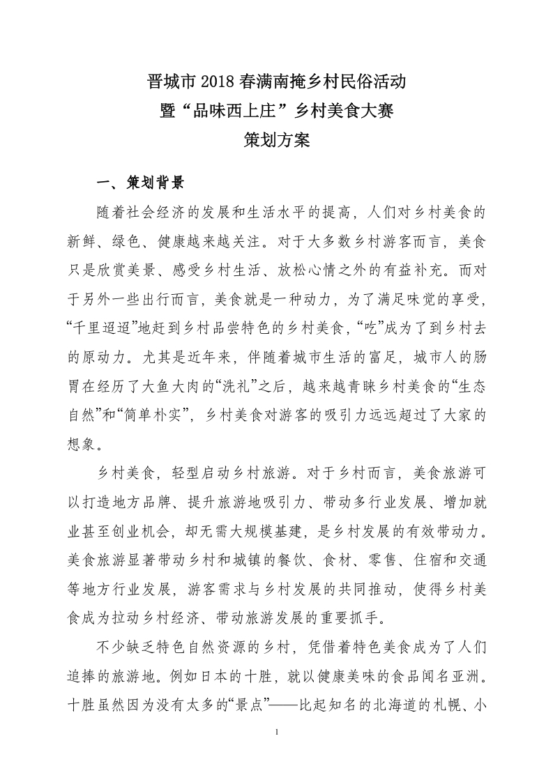 晋城市春满南掩乡村民俗活动暨品味西上庄乡村美食大赛策划方案