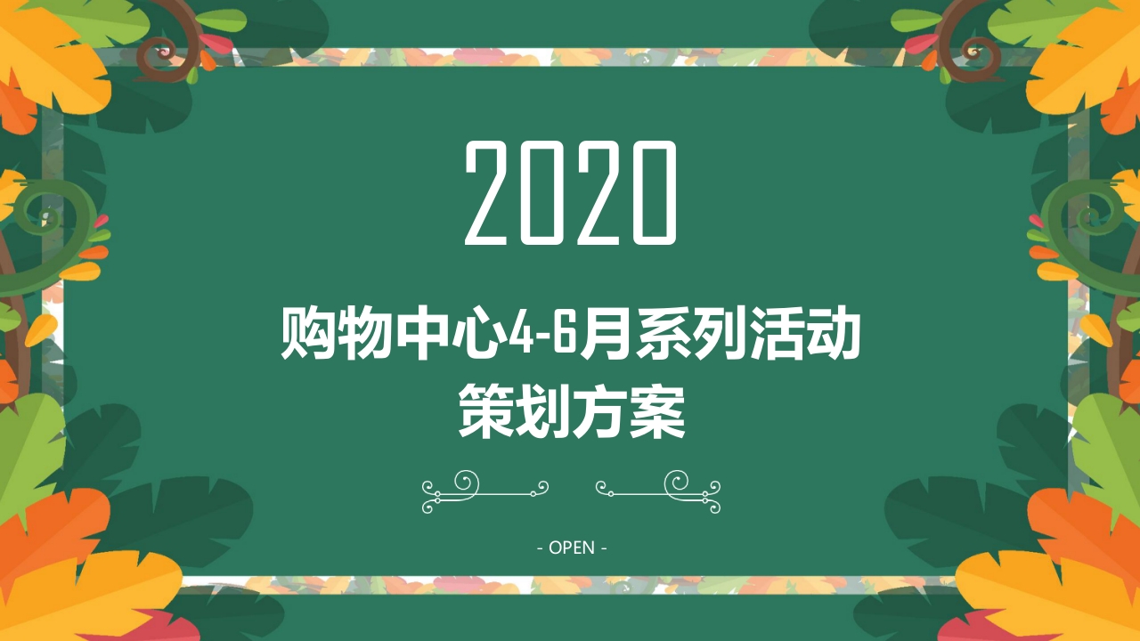 2020购物中心4-6月系列活动策划方案OPEN商业广场汇集众多大牌资源,集购物、美食娱乐休闲为。一体的花园式纯正购物广场客群主体为周边地区、城市当地年轻家庭亲子客群以及郑州地区年轻客群