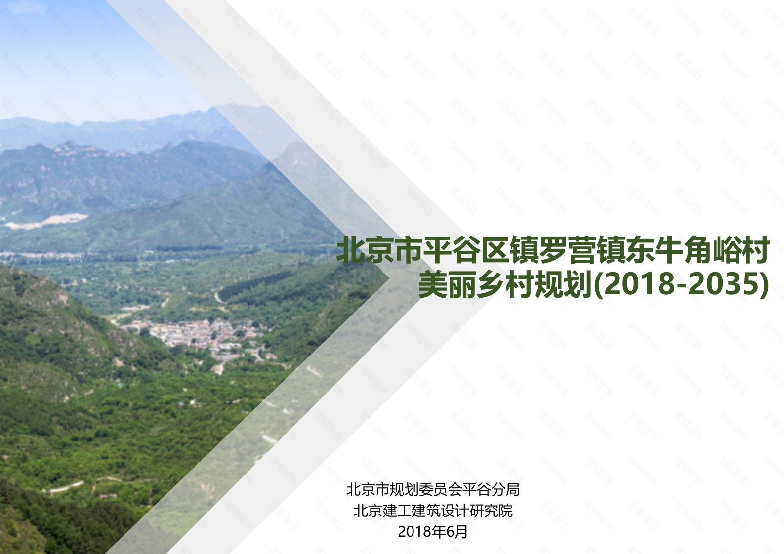 北京市平谷区镇罗营镇东牛角峪村美丽乡村规划(2018-2035)北京市规划委员会平谷分局北京建工建筑设计研究院2018年6月目录CONTENTS01项目背景02村庄概况03村庄规划04美丽乡村实施方案1、政策背景1、区位条件1、村庄展定位1、整治内容2、规划依据2、村庄概况2、产业规划2、整治实施方案3、规划原则和范围3、村庄特点3、村域及村庄规划3、投资估算3、上位及相关规划4、现状问题总结3、村庄风貌引导