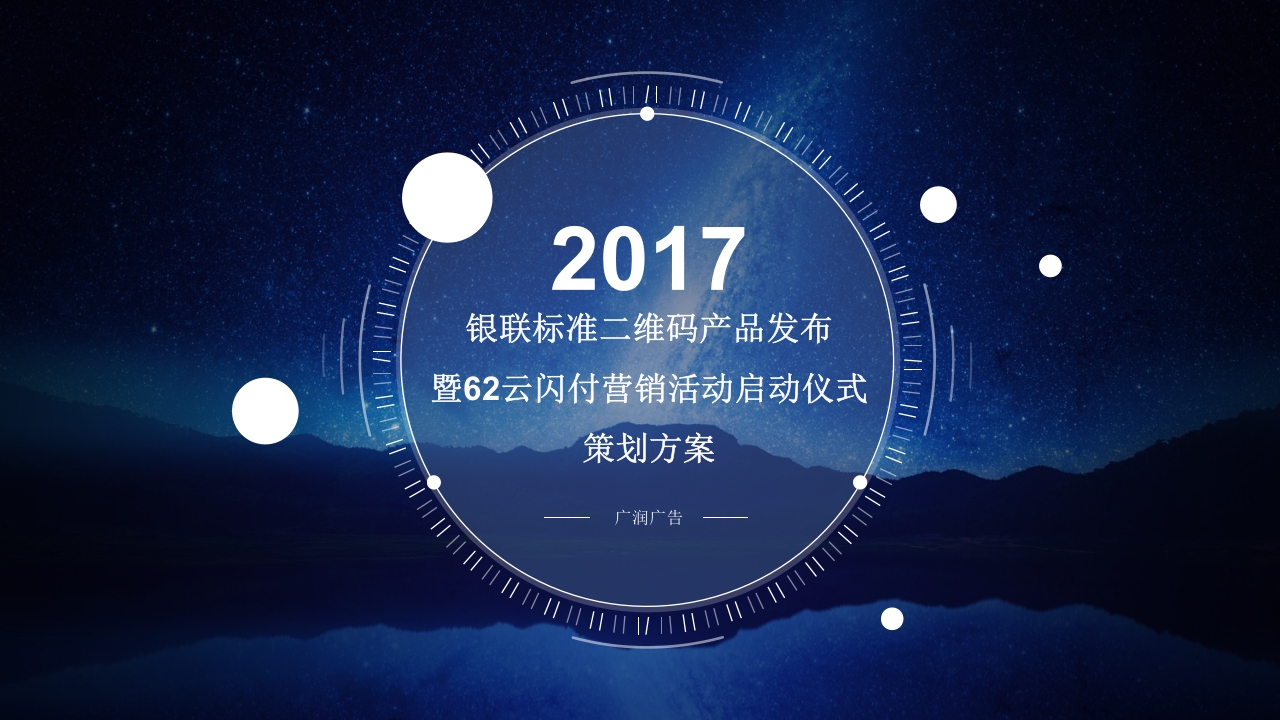 2017银联标准二维码产品发布暨62云闪付营销活动启动仪式策划方案广润广告UnionPayQ银联ick银联云闪付成功基础上一革新在继续背景Background1.正式宣布银联进入二维码支付市场,为云闪付品牌增加重要产品。2.是“62”营销活动参与各方的重要诉求,有利于联动银行卡产业各方共同造势,共同宣传。3.是“62”营销活动预热的重要环节,有利于提升云闪付全产品的知名度和使用量,推动主要业务发展。4.是展示银联产品创新能力和行业领导力的重要途径,有利于坚定商业银行、收单机构、合作商户与银联合作的信心,为今后的持续深入合作打下基础,并在境内外宣传银联品牌及产品。