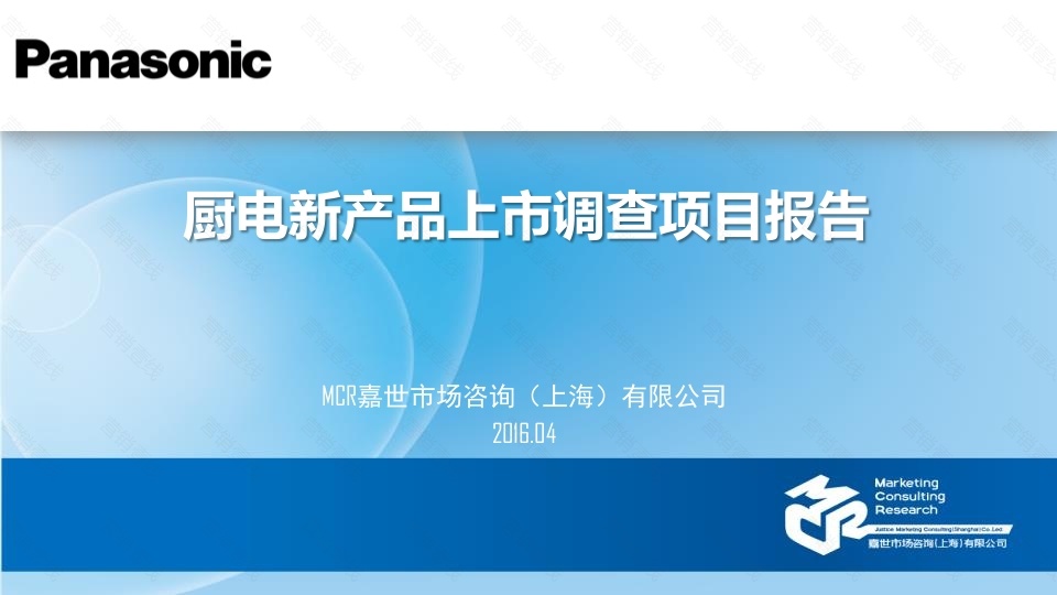 Panasonic厨电新产品上市调查项目报告MCR嘉世市场咨询(上海)有限公司MarketingConsultingResearch目次销线调查目的及实现方法销线32主要研究发现3结论与建议2