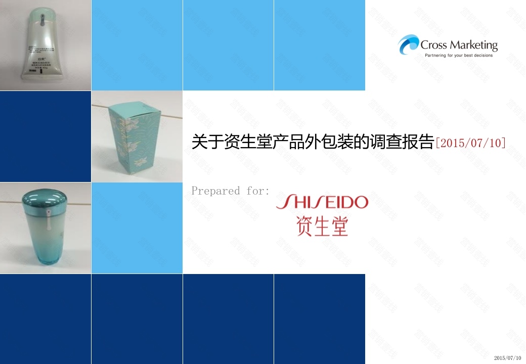 Cross MarketingPartnering for your best decisions关于资生堂产品外包装的调查报告[2015/07/10]Prepared for:HIEIDO资生堂2015/07/10目录调查背景与目的总结主要发现附件:个人背景资料