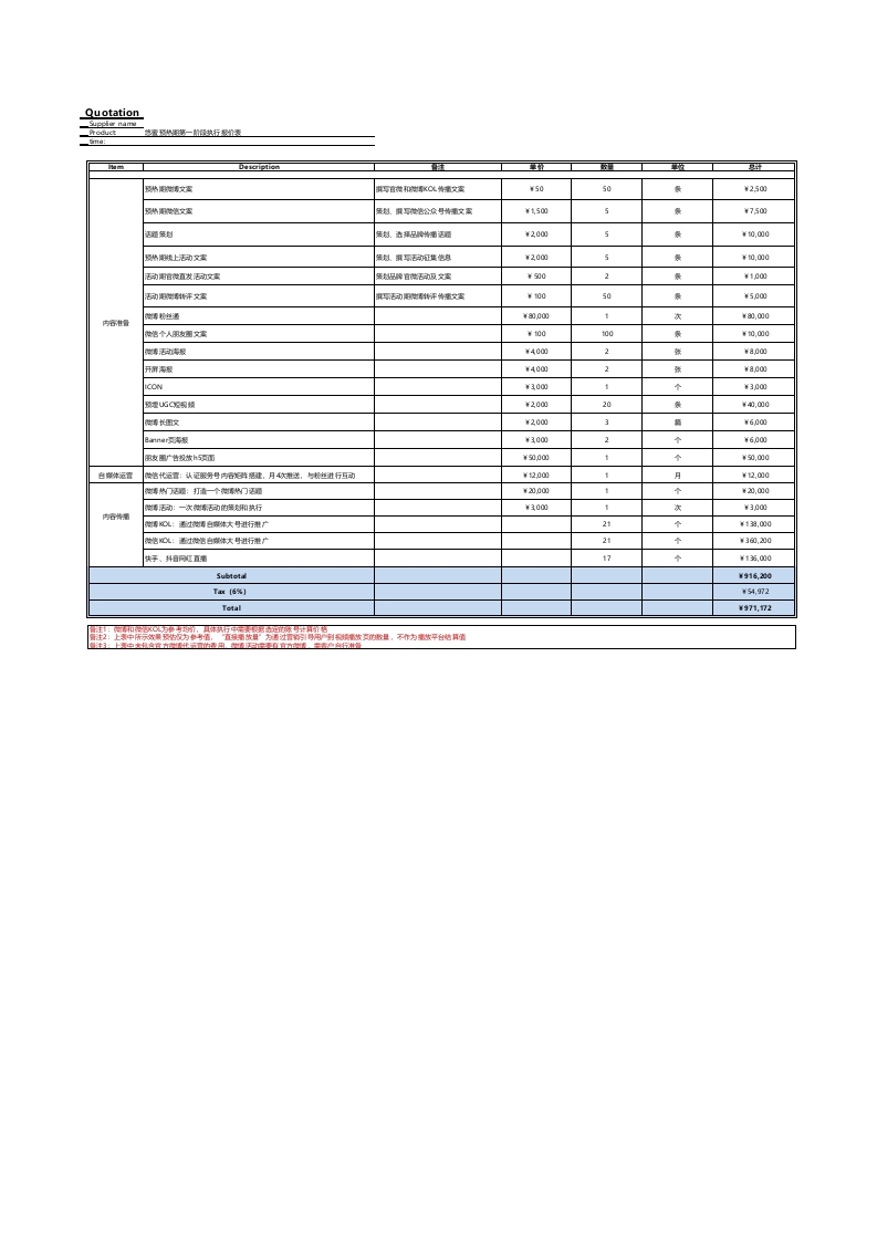 首页行业工具表格模板广告报价-《悠蜜》第一阶段执行报价表