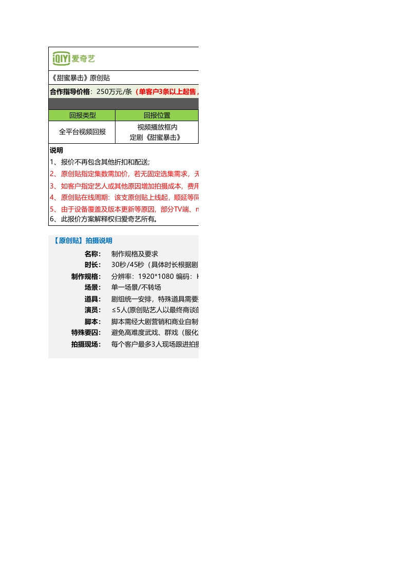 首页行业工具表格模板广告报价-爱奇艺青春励志大剧《甜蜜暴击》原创贴报价
