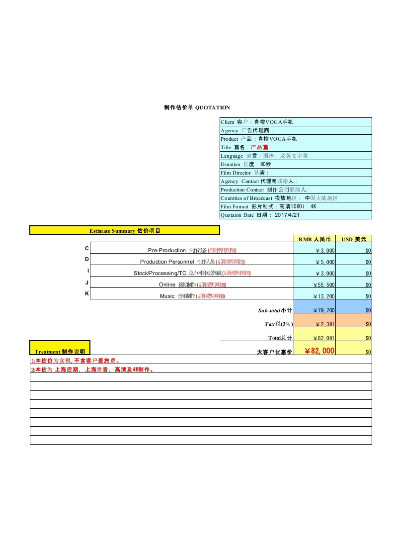 首页行业工具表格模板广告报价-青橙VOGA手机产品片制作报价