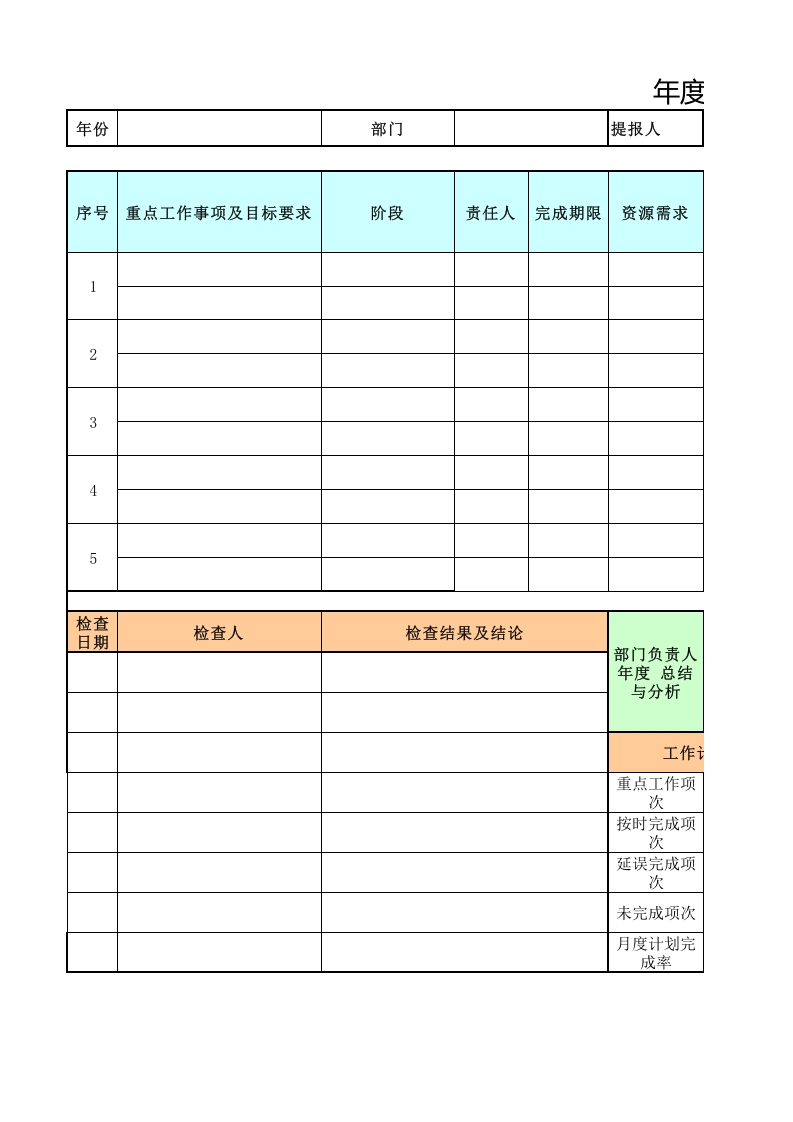 【卧龙营销咨询】年度工作计划及执行成效管控表