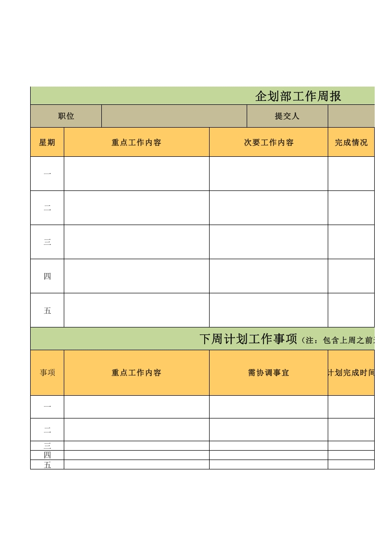 首页行业工具表格模板【卧龙营销咨询】企划部一周工作计划表