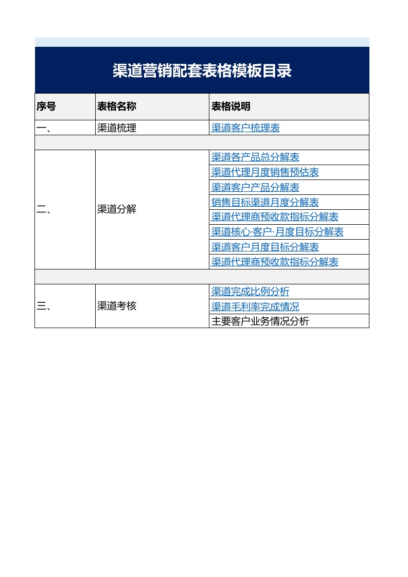 首页行业工具表格模板渠道营销解决方案整套表格
