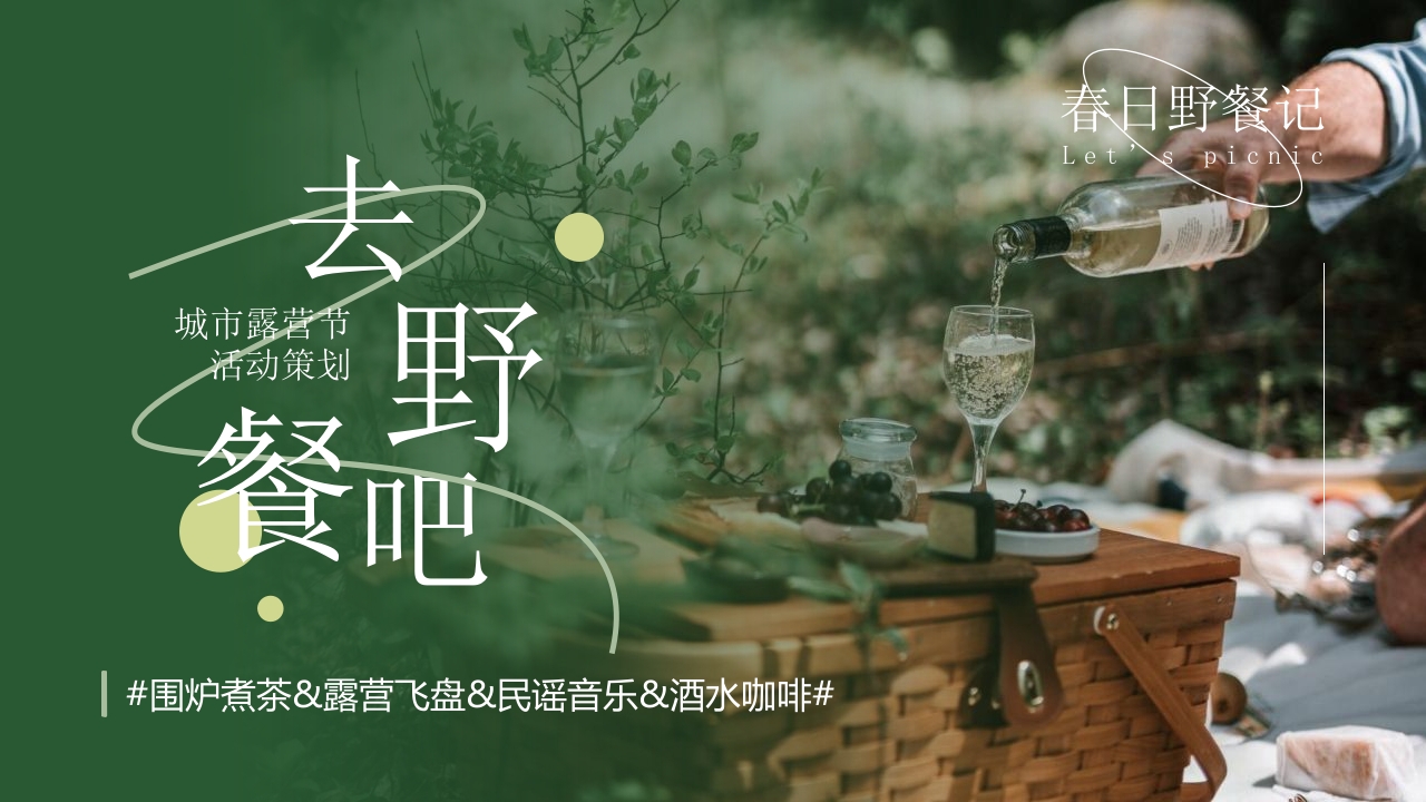 春日野餐记城市露营节动策野餐#围炉煮茶&露营飞盘&民谣音乐&酒水咖啡#录策划阐述主体内容氛围包装宣传规划Planning OnContent PlanningThe LayoutPromotionalPlanning On春日野餐记策PART.01述#围炉煮茶&露营飞盘&民谣音乐&酒水咖啡#