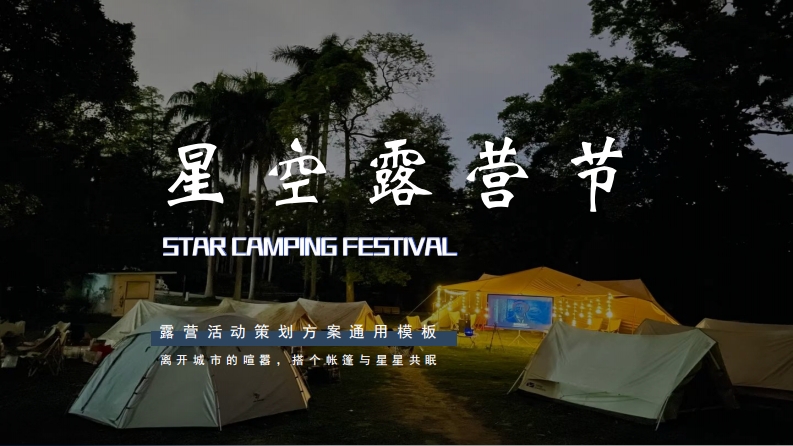 星空露营节STAR CAMPING FESTIVAL露营活动策划方案通用模板离开城市的喧器,搭个帐篷与星星共眠壹策划思路贰活动亮点叁主题布置肆活动规划伍活动宣传策划思路