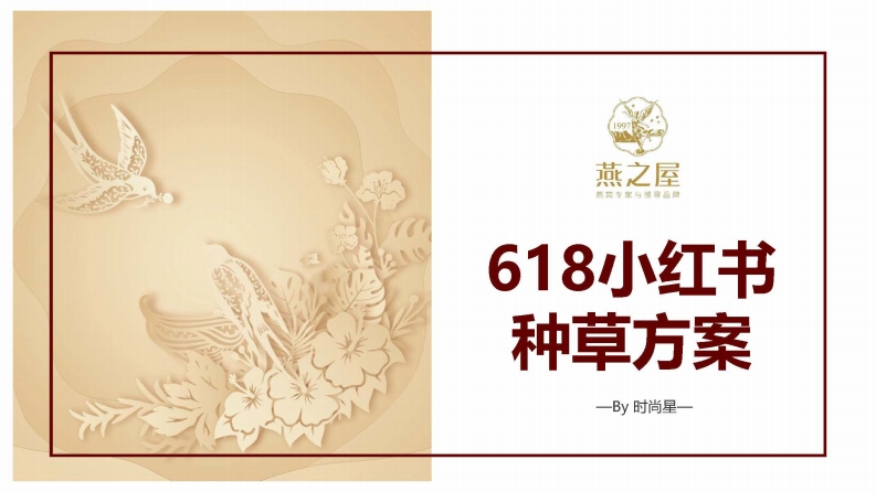 燕之屋618小红书种草方案一By时尚星一任务◆P联名新品上新污引起消费者关注梳理◆借618大促节点进行维老拉新,促进销售转化找准突破口,攻破市场竞争壁垒●重新认识燕之屋