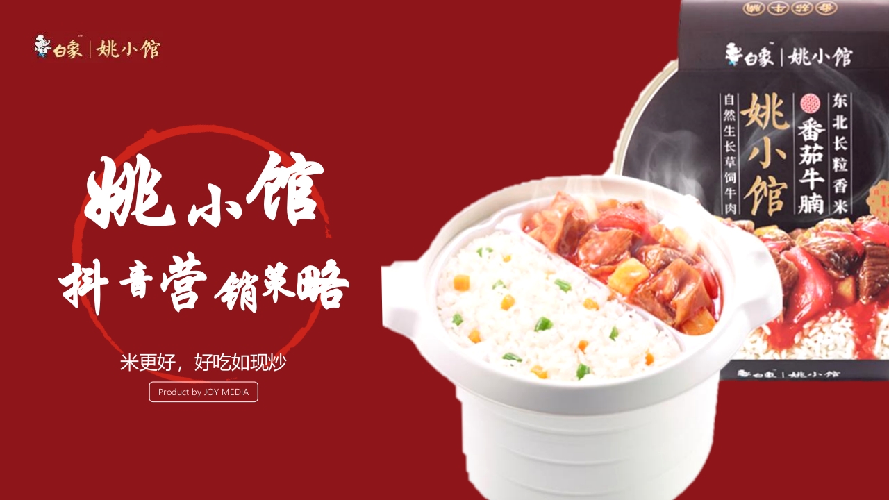 自然生长草饲牛肉姚小馆东北长粒香米米更好,好吃如现炒Product by JOY MEDIA要白象姚小馆行业认知2015-2020年自热食品市场规模及预测(亿元)数据来源:中商产业研究院45404035突如其来的疫情改变大众生活方式3530得益于“宅经济”的快速增长30252724自热食品市场跳跃式增长202015105023要白象姚小馆行业认知自热食品品类相关信息量(万)数据来源:微热点1009088.180自热火锅享受火锅行业红利70成为自热食品中的领头品类60-50-自热米饭声量排行品类NO.350.640-43302025.41007.1582356