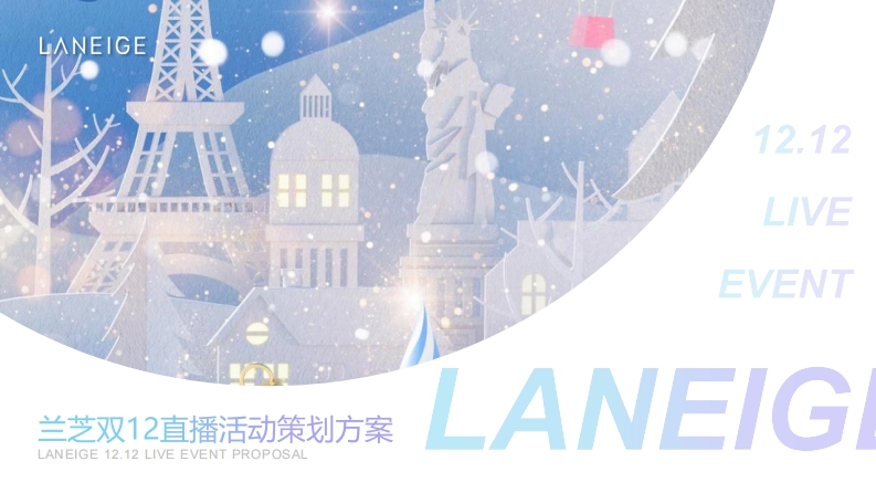 X山ANEIGE12.12LIVEEVENT兰芝双12直播活动策划方案LANEIGLANEIGE 12.12 LIVE EVENT PROPOSALEVENT CONTENTLANEIGELANEIGE01020304活动概念直播规划运营管理EVENTCREATIVEOPERATIONCONCEPTDESIGNPLANDETAILSANEIGE 12.12 LIVE EVENT PROPOSAL市场氛围,ATMOSPHERE12月是一个什么样的氛围12131415161718双十二购物狂欢节拥抱情人节世界强化免疫日诗人余光中逝世《…柴门霍夫博士证辰《永乐大典》修编…英国作家毛姆逝世,长城计算机集团成还有2项还有2项2021122242508平安夜美国电视节目开始,澳门回归纪念日苏联作家联合国南南合作日下了自己左还有1项还有2还有1项26272831节礼日博物学家达尔文开跨年我国首张电子报纸国时期诗人曹植.日食试验证明了爱,世贸成立(1995)还有2项