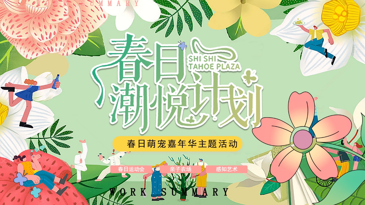 MSHI SHITAHOE PLAZA春日萌宠嘉年华主题活动春日运动会亲子农场感知艺术RKRY目录CONTENTS01活动概述02活动亮点Theme color makes PPT more convenient to changeTheme color makes PPT more convenient to change.03氛围布置04活动内容Theme color makes PPT more convenient to change.Theme color makes PPT more convenient to change策略趣撒野赴春天那场约会留存着怎样的美好记忆?春暖花开的曼妙时光里你想去哪里“造作”呢请搭乘这趟春日种草列车即刻出发!