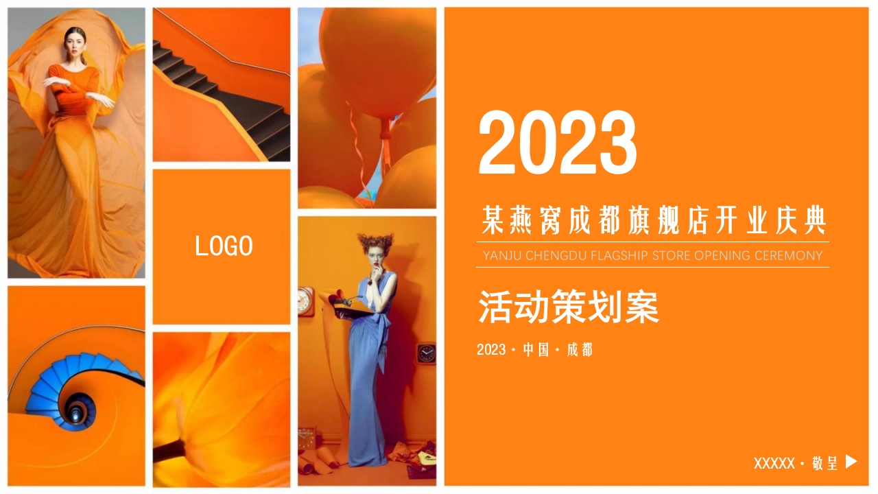 2023某燕窝成都旗舰店开业庆典LOGOYANJU CHENGDU FLAGSHIP STORE OPENING CEREMONY活动策划案2023・中国・成都LOGO【品牌释义】燕子在中国传统文化中具有吉祥之意,在民间,燕子飞临居所安身,更被视为是祥瑞之兆,寓意着家庭幸福安康、事业兴旺发达,寄托人们安居乐业的美好愿望,“某燕窝”正是取意于此!辅助图案是对“某燕窝”品牌含义的完美体现,在中国,数字“六”有“大顺”之意,而三口之家则是现代中国家庭构成的典型象征,辅助图案体现了由六片燕盏组成的环形结构将三只燕鸟包容在内,包含着“某燕窝”呵护千家万户,为家庭带去美满与幸福之意,同时更象征着“某燕窝”团以所富有的齐心协力、开拓进取的博大精神。至诚至爱至善活动概况PARTOVERVIEW OF ACTIVITIES
