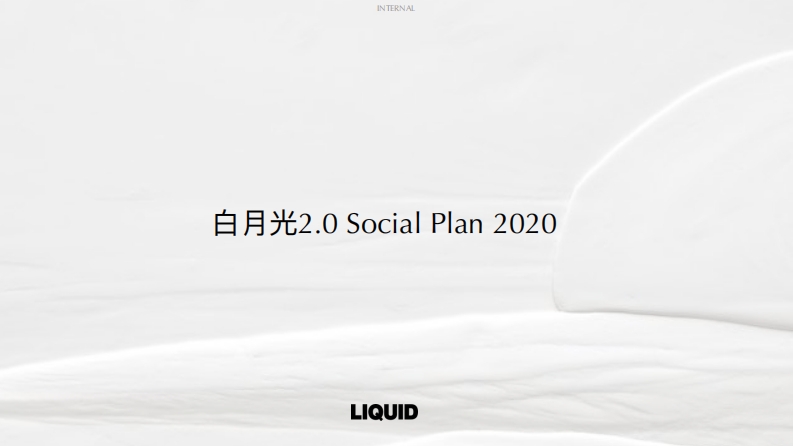 INTERNAL白月光2.0 Social Plan2020LIQUIDINTERNALCAMPAIGN ROADMAP#我的白月光#PhasePhase1(42.4.22)Phase2(4.23-5.19)Phase35.20-6.30)白月光回归何以白月光白月光进阶新上市沟通白月光2.0ower Demo Video,力证动效.逢释白月光Official Content白月光2,0四部曲:搭配花水与花眼轻焕白力HOW TO:三步手势,呈现最芙白月光。美白+抗老双重功效510母杀节:为她重启肌底白月光记忆易黑多场景挑战测评公众号:营销星球KEY VISUALPOWER DEMO VIDEOAssetsHOW TO VIDEO·LIFESYLE IMAGETEXTURE IMAGEUGC百人打卡测评白月光蜕变计划520告白:我的白月光日由CP KOL领衔.5,20递请粉丝示爱心中的白月光.度关白焕变。赢取白月光正装体验装科普类:长寿基因技术用在护肤上能有多时新手妈妈公众号:营销星球硬核?/双核肌因科技。抗老美白两手机KOL的神奇技术白月光沟通家族产品以及白金理念美容类:肌肤年轻白皙。赢在起胞线上/时尚类:时尚潮流中不变的最美白月光无论美白还是抗老。关键都在焕活肌肤自美容类:最强CP.美白抗老全安排!生活类:GT你的白金人生INTERNALPhase1白月光回归(4.2-4.22)多维度种草炒热白月光2.0多平台KOL牵头美白+抗老Efficacy引导微信申领试用开启28天打卡计划小红书