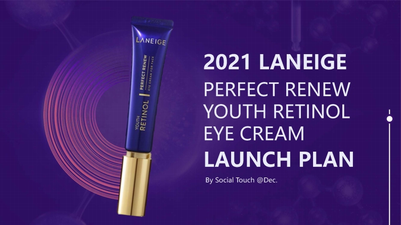 LANEIGE2021 LANEIGEPERFECT RENEWYOUTH RETINOLEYE CREAMLAUNCH PLANBy Social Touch @Dec.LANEIGEBRIEF RECAP针对一二三线25-35面临初老问题的女性234市场突围强化RTB差异性平台联动传播闭环占据同类市场声量教育纯度重要性配合节点线上线下引流强势招新95纯视黄醇的高效与安全实现最大化引流促销节点转化LANEIGEPart 1CompetitorStudyLANEIGE