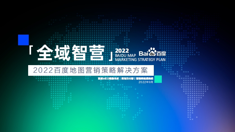 全域智营2022BAIDU MAPMARKETING STRATEGY PLAN2022百度地图营销策略解决方案2022年9月◆◆◆地图营销新机遇地图行业与用户趋势特点洞察百度地图营销价值百度地图产品优势与营销价值PART03百度地图营销体系CONTENT百度地图营销模式及精彩案例地图≠导航迈向远处风,景的引擎NEW驶入智能生活的起点