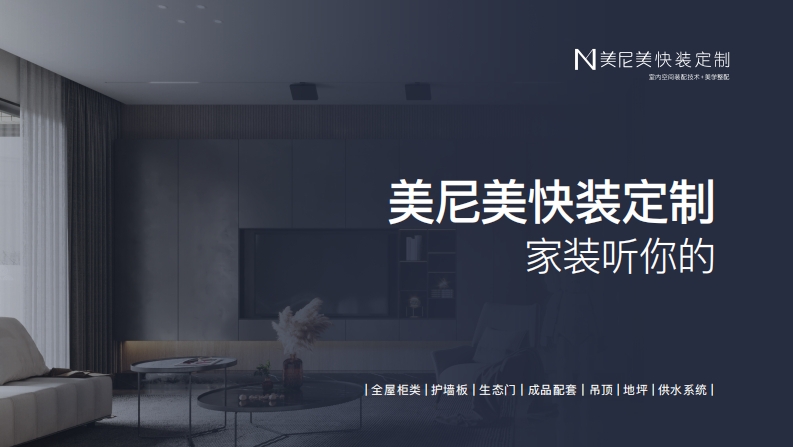 N美尼美快装定制美尼美快装定制家装听你的国家“双碳”战略国家“双碳”征程全面开启,要想实现碳达峰、碳中和,装配式装修是必经之路。装配式装修以标准化、模块化、一体化家装,以能源绿色低碳为关键,坚持科学降碳、精准降碳、依法降碳、安全降碳,确保如期实现碳达峰、碳中和目录CONTENTS01企业介绍品牌实力COMPANY PRORLEBRAND POWER03产品体系04营销优势MARKETING