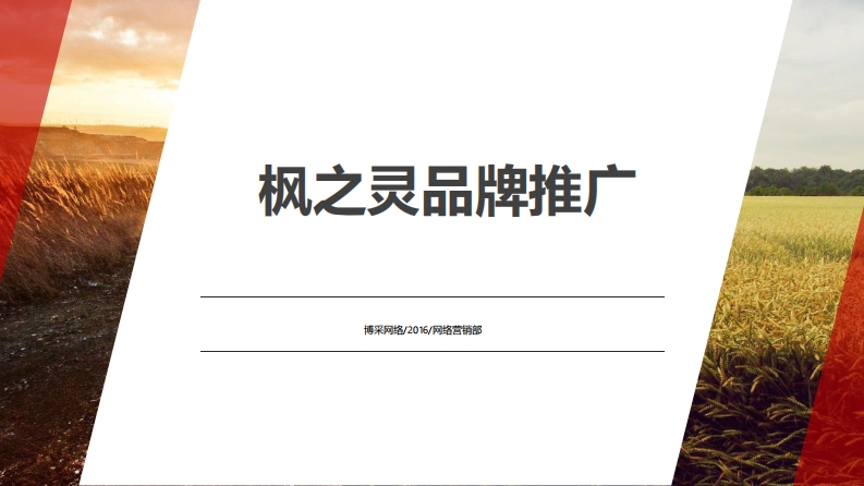 枫之灵品牌推广博采网络/2016/网络营销部行业背景高端护肤品牌满足消费者对肤质与生活品质的极致追求是希望给消费者不一样的体验和质感因此在城市污染程度日益严重的今天补水,补充营养,已经满足不了基枫之灵植物护肤,取自世界各地的础护肤的需求,抗敏,易于吸收已植物精华,借以铁皮石斜的有效成健康美丽+智慧经是每位女性都十分重视的课题分,将为亚洲人提供有效舒适的护为女性护肤带来真正的幸福感就市场而言,欧美大牌的护肤品并言,这将成为更好的选择!不是那么适用于亚洲人的肌肤,日韩系列高蝶护肤品,专柜价格不菲,而就个人而言,选择一套护肤品,不仅注重性价比,更注重使用体验和效果。SEO优化突出品牌调性怎样通过活动实现品牌与顾POINT 1关键问题POINT 3POINT 2提高BOCWEB怎样让品牌与消费者吏好互动?粉丝活跃度OUR BUSINESS IS ON TOP GUALTY