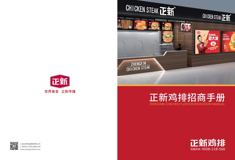 超大派ZHENGXINCHICKEN STEAK正新世界美食正新传播正新鸡排招商手册ZHENGXIN CHICKEN PLATOON INVITATION MANUAL正新鸡排加盟热线4008-218-566目录Contents品牌优势Branded Advantages02爆款主打Explosion Models Hit03风味小吃Delicious Snack0406正新鸡排天使系统支持System Support1012黄渤常见问答Q&A14加盟流程Joining Process160203品牌优势Branded advantages爆款主打Explosion Models Hit正新鸡排一块好鸡排值得用生命打造的事业!迷倒万千众生!