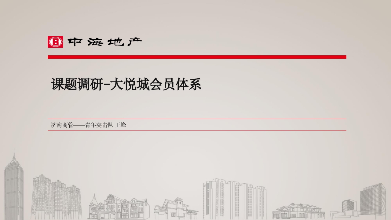 课题调研-大悦城会员体系济南商管一青年突击队王峰中粮—大悦城基本情况2大悦城会员基础体系介绍3大悦城大型活动案例介绍4大悦城特色活动案例分享中粮集团基本情况中粮集团有限公司(COFCO)成立于1949年,目前已发展成为中国领先的农产品、食品领域多中粮元化产品和服务供应商,致力打造从田间到餐桌的COFCO全产业链粮油食品企业建设全服务链的城市综合体利用不断再生的自然资源为人类提供营养健康的食品、高品质的生活空间及生活服务,贡献于民众生活的富足和社会的繁荣稳定。中粮从粮油食品贸易、加工起步,产业链条不鑫办公厅延伸至种植养殖、物流储运、食品原料加工、生物质能源、品牌食品生产销售以及地产酒店、金融服务等领域在各个环节上打造核心竞争能力,中粮留易为利益相关者创造最大化价值并以此回报全体客中粮油牛电子务户、股东和员工作为投资控股企业中粮旗下拥有中国食品中粮吉林浪海南科技公司(HK0506)、中粮控股(HK0606)、蒙牛乳业(HK2319)、中粮包装(HK0906)四家香港上市公司,以及中粮屯河(600737.SH)、中粮地产(000031.SZ和丰原生化(000930.SZ)三家内地上市公司。利用自身遍及世界的业务网络,中粮积极组织调配各项资源一直拥有良好的经营业绩,持续央企、世界500强、产业线形成产业链、全产业链、全名列美国《财富》杂志全球企业500强,居中国食服务链(居住、购物、餐饮、娱乐、休憩、社交、办品工业百强之首。2009年中粮集团成为中国2010年上海世博会高级赞助商。公)