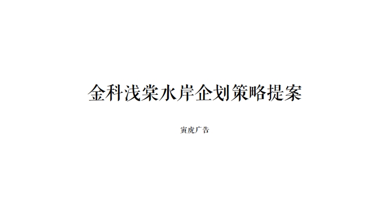 金科浅棠水岸企划策略提案寅虎广告“湖是风景中最美丽、最富于表情的姿容,它是大地的眼睛,观看着它的人可以衡量自身天性的深度。梭罗背景近景价值线故事线推广线视觉线