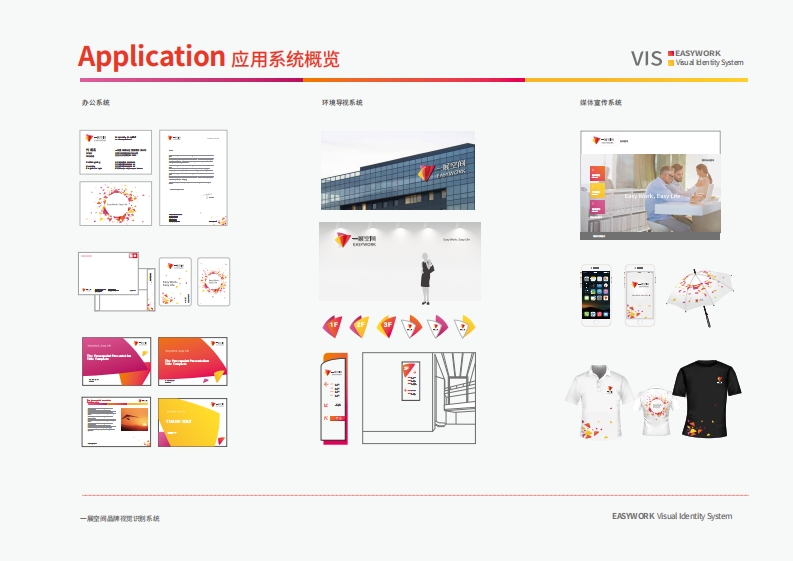 Application应用系统概览■EASYWORK办公系统B1Application应用部分Office transaction system办公事务系统B1-1.1应用部分名片名片是企业时内、时外交换信息的最重要的工代用名一展空间EASYWORK了企业的形。制作名片时,为了更好地统一代用名大小阿面等)可作为参考使用,具体设计可根Easy Work,Easy Life